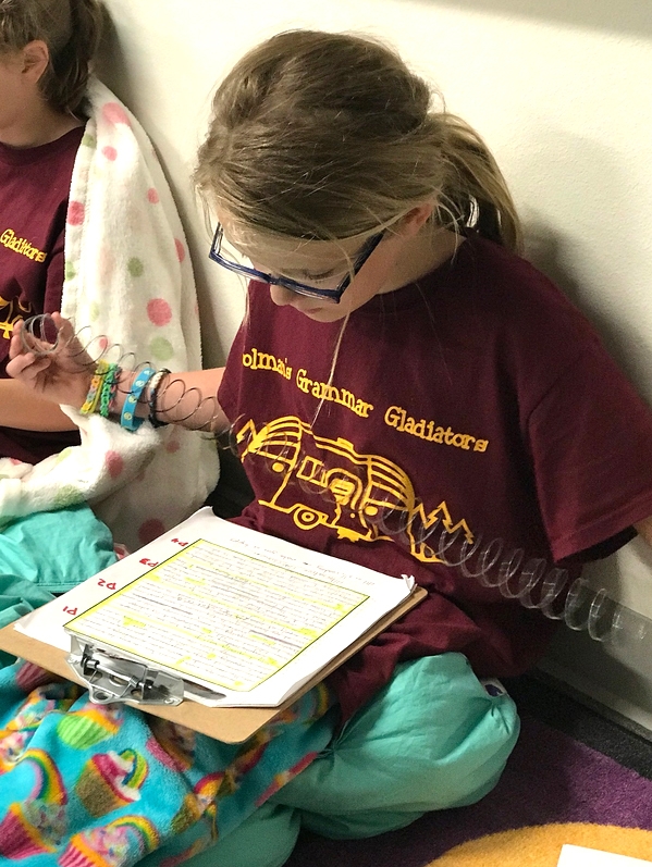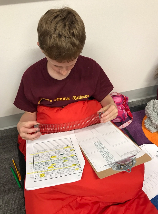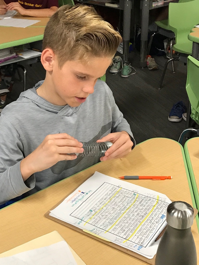 Lauren Golman, 4th-grade teacher at University Park Elementary (Dallas, TX) shared pictures of her students demonstrating the Slinky test in action—revising for sentence fluency using a concrete trigger.