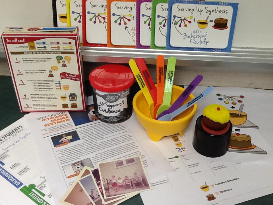 Teaching students to synthesize their reading is often a challenge. One way to support understanding is to use physical triggers when modeling this concept. Kristina Smekens likes to bring in a boxed cake mix, measuring spoons, and a mixing bowl to compare baking a cake to the steps involved in creating a synthesis.