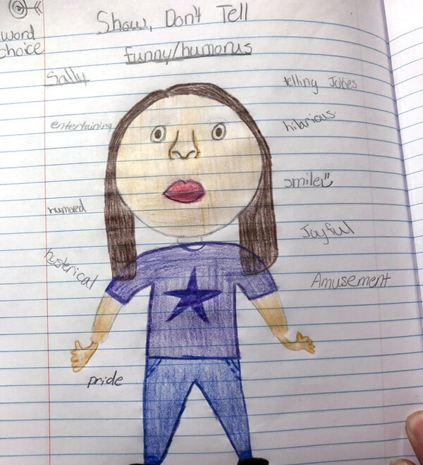 Tricia Snow, teacher at Fort Branch Community School (Fort Branch, IN), posted a tweet that highlighted student examples: 7th grade practiced Word Choice with a “Show, Don’t Tell” activity!