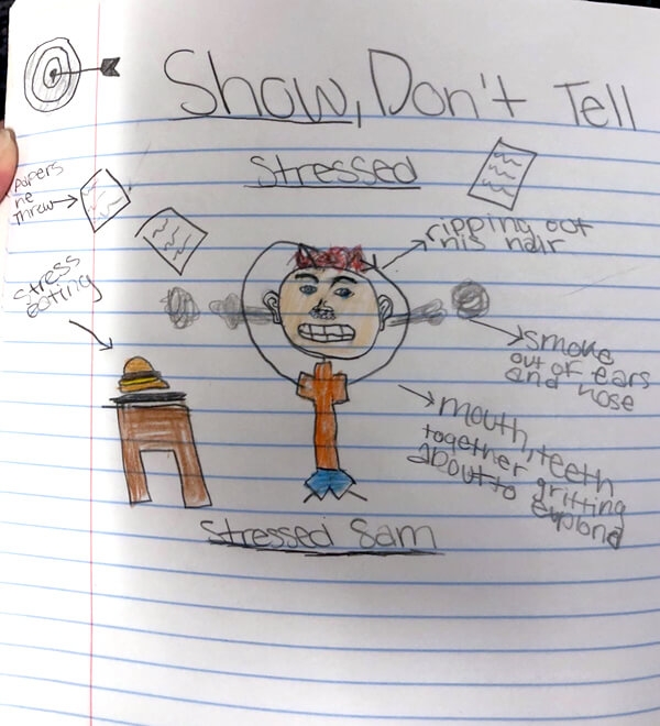 She reminds them they could have simply written “The teacher was mad.” But the students know there was so much more to that moment that wasn’t conveyed in that “telling” sentence. Needless to say, Angie’s students forever remember how to develop a “showing” moment in their writing. Thanks for sharing, Angie!